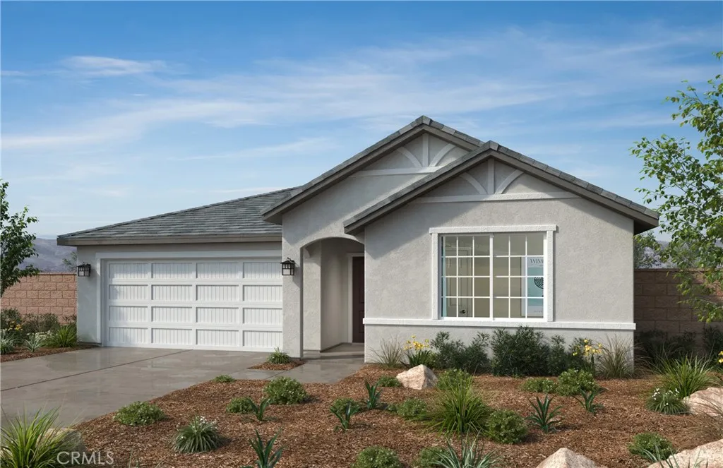 Wow! What a beautiful single-story home!! This home is an ENERGY STAR certified home which includes the latest in-home insulation and dual-pane windows delivering significant savings on utility bills when compared to a used home and supporting healthier indoor environments! Luxury Vinyl Plank Flooring, Light Gray Shaker Style Thermofoil Cabinets, Granite Kitchen Countertops with Full Tile Backsplash, and Stainless Steel Dishwaher, Stove, and Microwave, and more! Quick and easy access to I-215 and Hwy. 74, Close to Metrolink rail service. Photo is a rendering of the model. Buyer can either lease or purchase the Solar.
