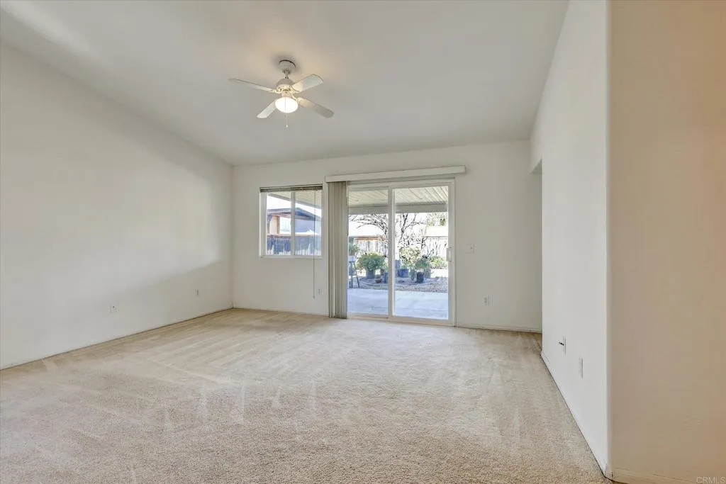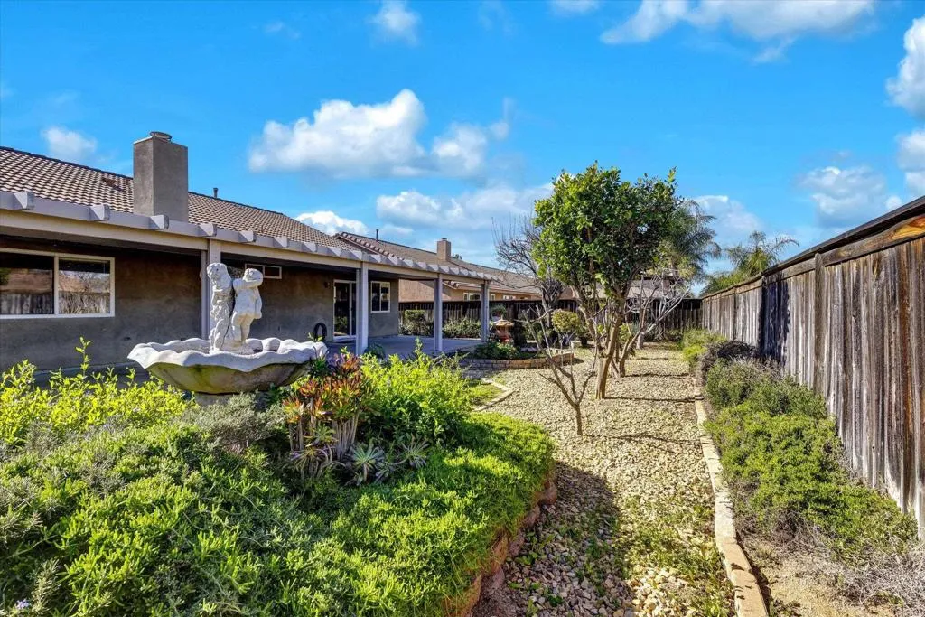 Welcome home to a beautiful one-story house, 4 bedrooms, 2 baths in the well-established & desirable neighborhood of Nuevo Ranch. This property has a 3-car garage with extra wide driveway and plenty of parking spaces. Inside, the flowing floor plan includes a formal living room and dining room with lots of natural light from large windows. The high ceilings create an open and spacious feel. Adjacent to the living room is an office, which can also be used as a guest room. The center of the house is the kitchen, which connects to the family room. The kitchen has wood cabinetry with ample storage space, a walk-in pantry, and a center island with breakfast bar seating. The family room has a gas fireplace and is cozy for family time. There are two large bedrooms with the hallway leading to an indoor laundry room and a second bathroom with double sinks. The master bedroom has a walk-in closet, a sliding door to the backyard, a bathroom with double sinks, and a toilet room with door for privacy. The house also has central air and gas heating. This beautiful house has been maintained by non-smoking, original owners. The low maintenance backyard with a fully covered built-in patio that spans the entire length of the home is great for friends and family gatherings. There is a gas hookup for your grill. This backyard has several mature fruit trees for your own picking! All windows are energy efficient, double-paned. Low HOA. With easy access to 215 and 74, this home is also conveniently located near schools, shopping, Metrolink rail service, hiking trails, horse amenities, Lake Perris, Old Town Temecula, Pechanga Casino and more. Only about 60 miles to the beach! This move-in-ready home offers the perfect balance of space, comfort, energy efficiency and opportunities in a wonderful neighborhood setting.