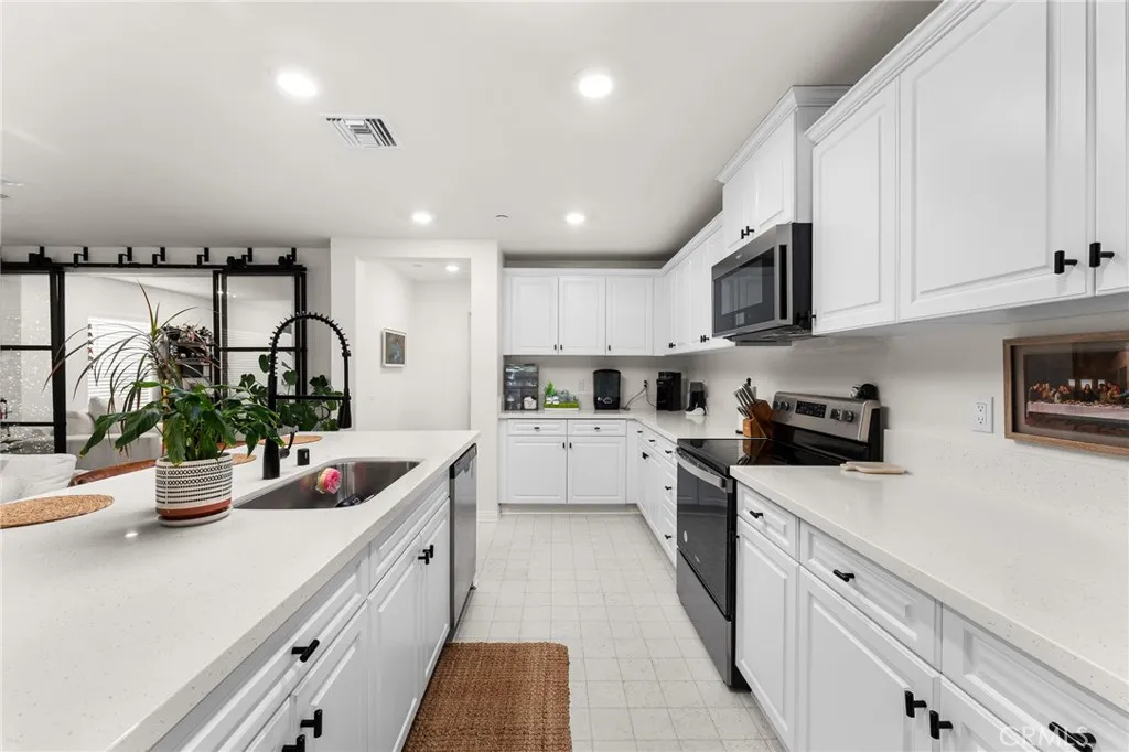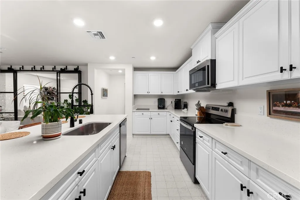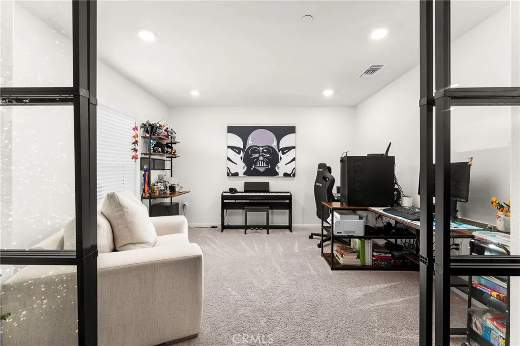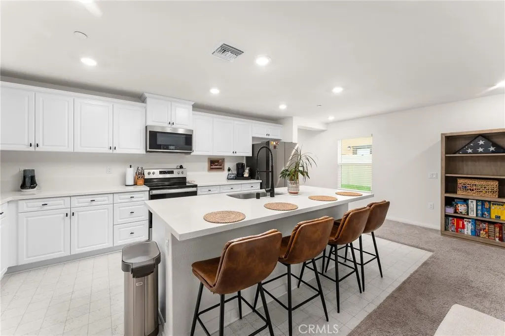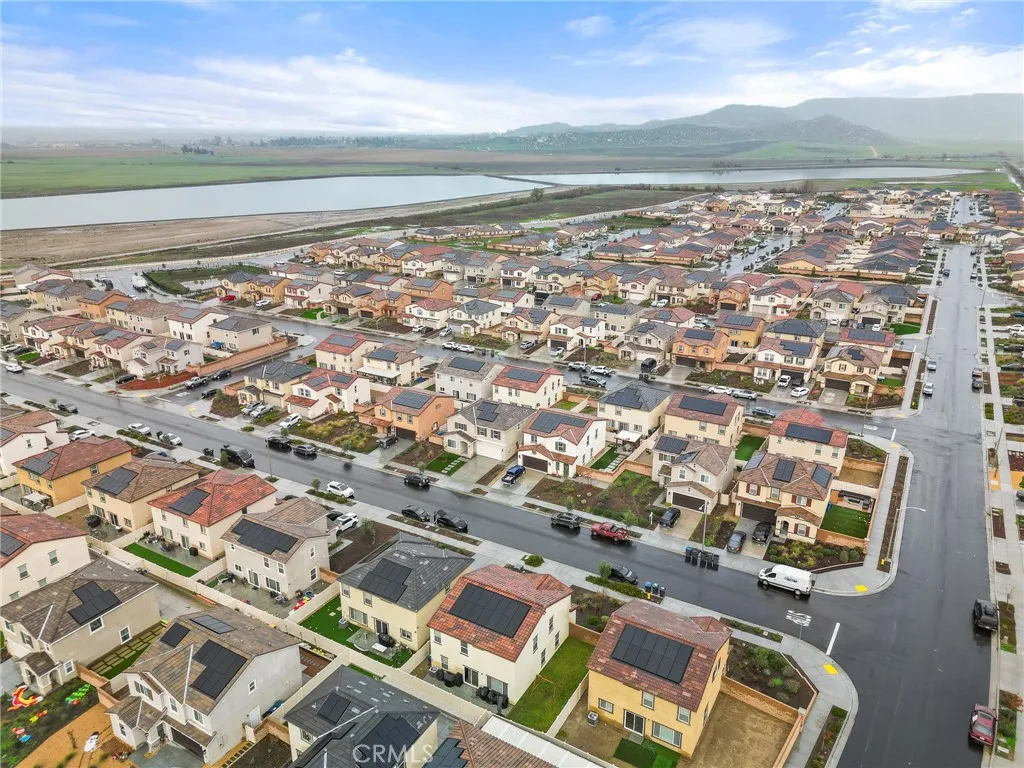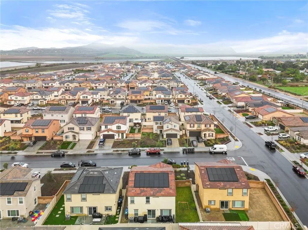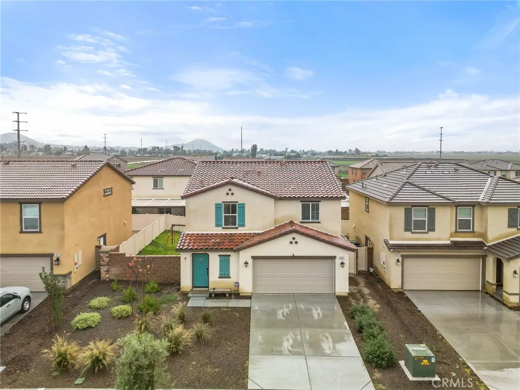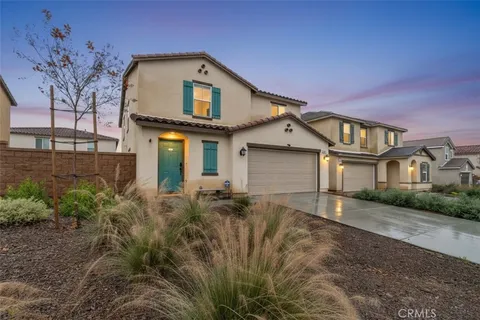 Welcome to this nearly new, energy-efficient home built just one year ago, located in a desirable newer construction community. This spacious 3-bedroom, 2.5-bath single-family home offers 2,145 sq ft of open-concept living and includes a dedicated home office - perfect for remote work or a flex space. The modern white kitchen features a large center island, ample cabinetry, and flows seamlessly into the living and dining areas, creating an ideal layout for entertaining. Additional highlights include an attached 2-car garage, solar energy system for lower utility costs, and a low-maintenance design buyers love. Enjoy a good-sized backyard with space for outdoor entertaining, pets, or future landscaping. Situated near planned community parks, this move-in-ready property offers easy access to shopping, schools, dining, and major commuter routes. If you're searching for a newer home in Nuevo, CA with solar, open floor plan, and a home office, this property checks all the boxes. Don't miss this opportunity to own a modern, energy-efficient home in a growing community in Nuevo